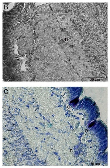 - Zaitseva, O.V. Structure of sensory organs and skin innervation in the mollusc Pomacea paludosa (Prosobranchia). J. Evol. Biochem. Physiol. 1998, 34, 233–242. [Google Scholar]