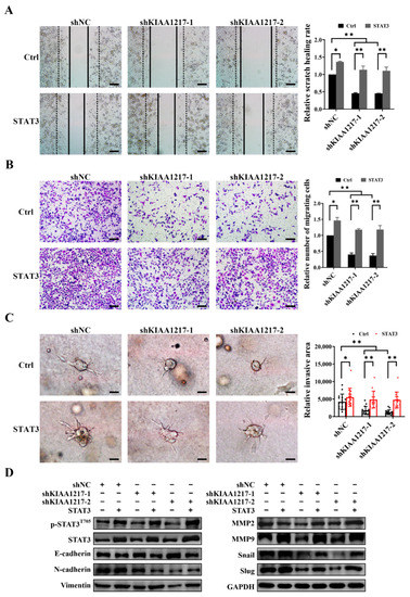 2.4. KIAA1217 Induces EMT by Activating STAT3 in HCC Cells