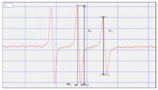 A 50% hematocrit was prepared by centrifuging 1.6 mL of the incubated erythrocyte suspension and collecting 1.54 mL of the supernatant. To the remaining 60 µL, 0.6 µL Tempamine (spin tracer: 10 mM of Tempamine dissolved in PBS) was added and stirred for 30 min at room temperature. The samples were then washed with 1 mL of 80 mM potassium ferricyanide and centrifuged, and the EPR spectra of the samples (see Figure 4), as well as the tracer spectrum in PBS, were determined. The rotational correlation time of the tracer was calculated from the formula: