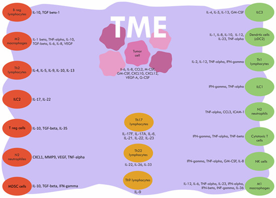 2.1. Immunosuppressive Cells/Tumor Cells and Their Cytokines Panel