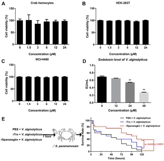 2.5. rSparanegtin Shows No Cytotoxicity and Could Reduce the V. alginolyticus Endotoxin Level In Vitro
