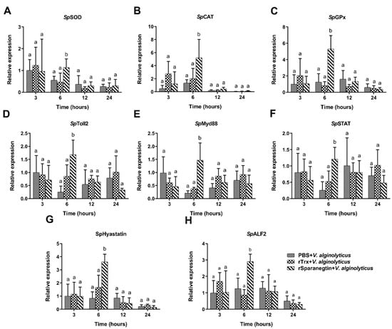 2.6.3. Pre-Incubation of rSparanegtin and V. alginolyticus Modulate Immune-Related Gene Expression Profiles
