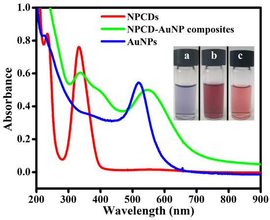 3.1. Characterization of NPCDs-AuNPs Composites