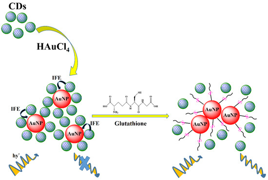 - Qin, X.; Yuan, C.; Chen, Y.; Wang, Y. A fluorescein—Gold nanoparticles probe based on inner filter effect and aggregation for sensing of biothiols. J. Photochem. Photobiol. B 2020, 210, 111986. [Google Scholar] [CrossRef]