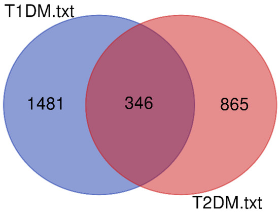 Venn diagram regarding the protein coding genes in T1DM and T2DM.