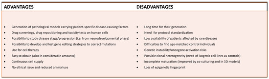 Advantages and disadvantages of hiPSC technology to study rare neurologic diseases.