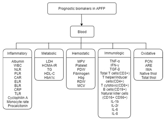 Considering the above-mentioned etiologic factors of APFP development, a laboratory test that evaluates prognosis is considered desirable. Numerous studies have investigated hematologic markers based on inflammatory mediators, vascular failure, oxidative stress, and immunological responses [12,13,14,15].