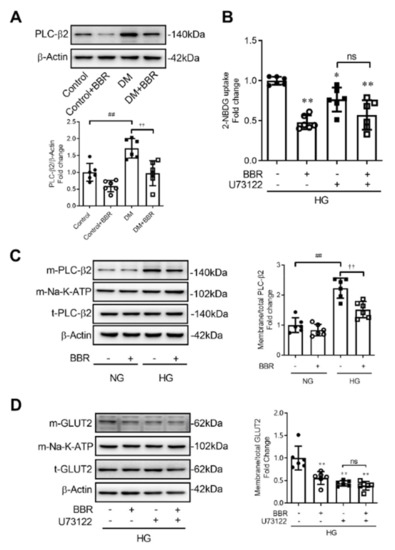 2.4. Berberine Decreased GLUT2 Translocation and Glucose Uptake through Depressing PLC-β2 - GLUT2 Signal Pathway