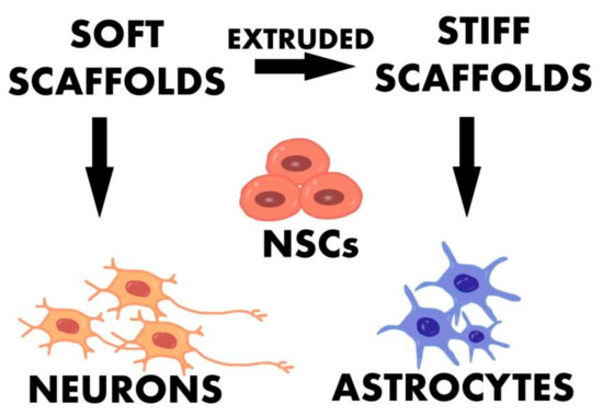 The team of Chaejeong Heo et al. examined the effect of graphene/polyethylene terephthalate (PET) film electrostimulation on the behavior of Sh-sy5y cells. They reported that the optimal effects were observed after stimulation with a weak electric field, exactly 4.5 mV/mm, with 10 s pulses and a total electrostimulation time of 32 min. The applied technique allowed for increasing the integration between cells and positively influenced the biosynthesis of proteins responsible for cell adhesion and migration [46]. NSCs are multipotent cells that are not only capable of self-renewal, but also differentiation into various nerve and glial cells of the nervous system. NSCs have the ability to proliferate vigorously like all stem cells, but what makes them different is their ability to remain dormant for a long time, providing a reserve of cells in case of a need for regeneration. In addition, the migration capacity allows them to be properly transported to the selected place [72]. However, due to the lack of an appropriate scaffold for neuronal differentiation, brain regeneration consists mainly of the formation of glia. Glia have a number of important functions, such as creating the myelin sheath, allowing for saltatory conduction of the nerve impulse, mediating the nutrition of nerve cells, and can perform defensive functions due to their ability to phagocytose. However, they do not directly conduct nerve impulses [73].