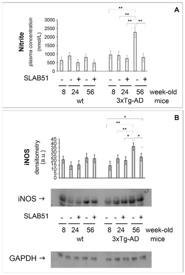 - Luth, H.J.; Holzer, M.; Gartner, U.; Staufenbiel, M.; Arendt, T. Expression of endothelial and inducible NOS-isoforms is increased in Alzheimer’s disease, in APP23 transgenic mice and after experimental brain lesion in rat: Evidence for an induction by amyloid pathology. Brain. Res. 2001, 913, 57–67. [Google Scholar] [CrossRef]