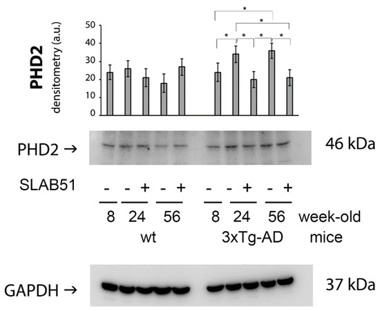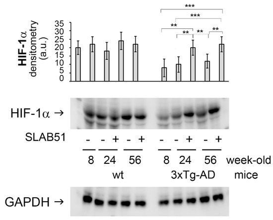 2.2. SLAB51 Restored HIF-1α Cerebral Expression in AD Mice