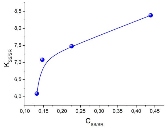 Dependence of CIDNP coefficient (K) on the concentration of (R,S)- and (S,S)-diastereomers. The initial concentrations in the first experiment are 1.2 × 10−3 M of (S,S) and 3.6 × 10−3 M of (R,S), in the second—0.9 × 10−3 M of (S,S) and 5.0 × 10−3 M of (R,S). Subsequent additions of (S,R)- or (S,S)- are indicated as the sum of initial concentrations and the additive in the columns CSR and CSS. Optical density was varied from ca. 0.5 to 1.0.