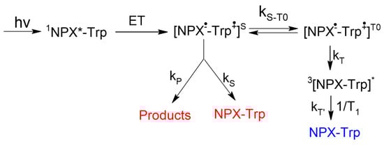 - Ageeva, A.A.; Babenko, S.V.; Magin, I.M.; Plyusnin, V.F.; Kuznetsova, P.S.; Stepanov, A.A.; Vasilevsky, S.F.; Polyakov, N.E.; Doktorov, A.B.; Leshina, T.V. Stereoselectivity of electron and energy transfer in the quenching of (S/R)-Ketoprofen-(S)- Tryptophan dyad excited state. Int. J. Mol. Sci. 2020, 21, 5370. [Google Scholar] [CrossRef]