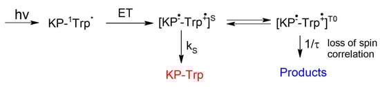 - Polyakov, N.; Ageeva, A.; Kiryutin, A.; Timoshnikov, V.; Magin, I.; Babenko, S.; Kuznetsova, P.; Kruppa, A.; Purtov, P.; Stepanov, A. Spin effects as a tool to study photoinduced processes in (S/R)-ketoprofen-(S)-N-methylpyrrolidine dyads. J. Chem. Phys. 2019, 151, 245101. [Google Scholar] [CrossRef] [PubMed]