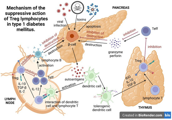 Mechanism of the suppressive action of Treg lymphocytes in type 1 diabetes mellitus.