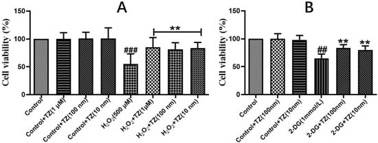2.1. Effect of Terazosin on Cell Viability under H2O2- and 2-DG-Induced Stresses