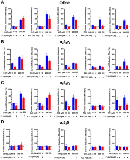 2.2. Different BZD Ligands Exhibit Distinct Flumazenil-Insensitive Modulation of Different GABAARs