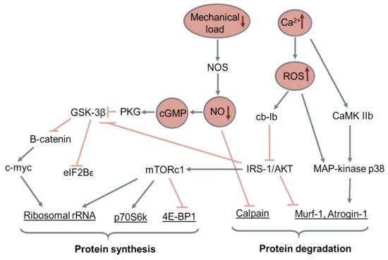 A scheme summarizing the key signaling pathways regulating protein turnover during muscle disuse is presented in Figure 2.