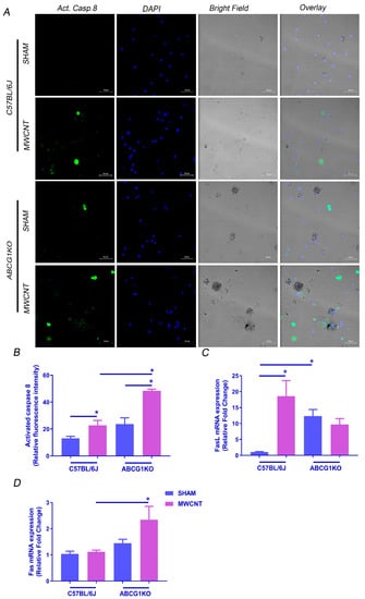 2.3. MCWNT Activates Caspase 8-Mediated Apoptotic Pathway in ABCG1 KO Mice