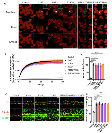 3.5. The P283L Variant Persists Longer in Gap Junctions than Wildtype Cx43