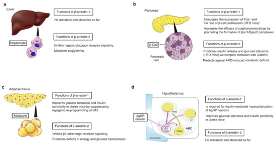- Pydi, S.P.; Barella, L.F.; Zhu, L.; Meister, J.; Rossi, M.; Wess, J. β-Arrestins as Important Regulators of Glucose and Energy Homeostasis. Annu. Rev. Physiol. 2021, 84. [Google Scholar] [CrossRef]