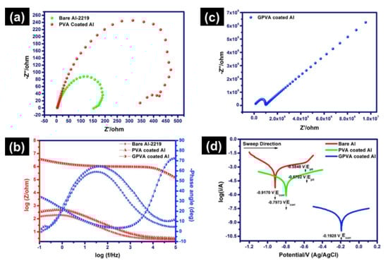 - Hikku, G.S.; Jeyasubramanian, K.; Venugopal, A.; Ghosh, R. Corrosion resistance behaviour of graphene/polyvinyl alcohol nanocomposite coating for aluminium-2219 alloy. J. Alloys Compd. 2017, 716, 259–269. [Google Scholar] [CrossRef]