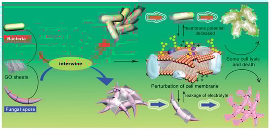 - Chen, J.; Peng, H.; Wang, X.; Shao, F.; Yuan, Z.; Han, H. Graphene oxide exhibits broad-spectrum antimicrobial activity against bacterial phytopathogens and fungal conidia by intertwining and membrane perturbation. Nanoscale 2014, 6, 1879–1889. [Google Scholar] [CrossRef]