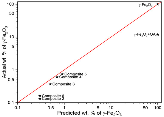 Predicted vs. estimated content of γ-Fe2O3 nanoparticles in the Samples 1–2 and Composites 2–6.