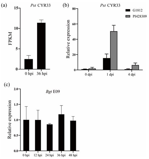 Stripe rust, caused by Puccinia striiformis f. sp. tritici (Pst), is one of the most devastating diseases of crops that poses a major threat to the production of hexaploid wheat (Triticum aestivum L.), around the world [,]. To date, in the effort to fight for wheat stripe rust, several stripe rust resistance genes have been identified and cloned, including Yr5/Yr7, YrSP, Yr15, Yr18/Lr34, Yr36, Yr46, YrAS2388 and YrU1 [,,,,,]. Among these, YrAS2388 encodes a nucleotide-binding site (NBS) and leucine-rich repeat (LRR) proteins (NLRs), and Yr5/Yr7 and YrSP encode NLR with an additional BED domain []. YrU1 encodes an NLR, with an N-terminal ankyrin-repeat and a C-terminal WRKY domain, which exists only in Triticum species, representing a very unique structure in plants []. The wheat stripe resistances mediated by those NLRs are race-specific and are generally only effective against a subset of Pst isolates.