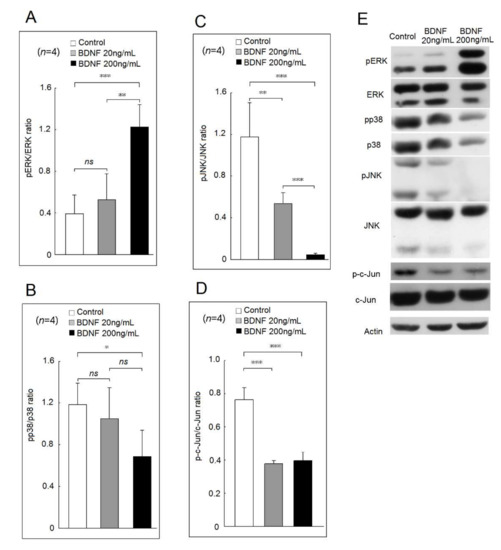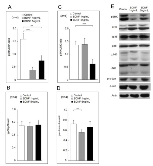 2.2. Effects of BDNF in Mitogen-Activated Protein Kinase (MAPKs) and c-Jun Phosphorylation