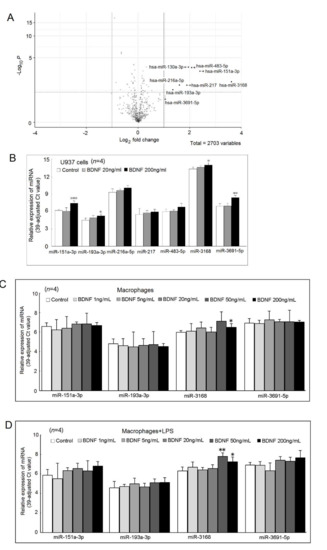 Chicago/Turabian StyleYu, Hui-Chun, Hsien-Bin Huang, Hsien-Yu Huang Tseng, and Ming-Chi Lu. 2022. "Brain-Derived Neurotrophic Factor Suppressed Proinflammatory Cytokines Secretion and Enhanced MicroRNA(miR)-3168 Expression in Macrophages" International Journal of Molecular Sciences 23, no. 1: 570. https://doi.org/10.3390/ijms23010570