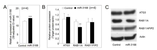 2.8. Identification of Protein Expression Regulated by miR-3168