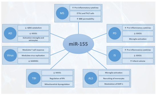 4.3. MiR-155 in Other Neuroinflammatory Disorders