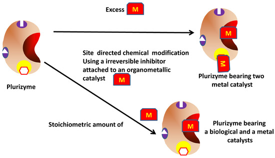 The versatility of this strategy to introduce different active centers, benefitting from the environment generated by the active enter pocket, may open unlimited opportunities to prepare catalysts able to catalyze the most complex processes under the milder and most selective conditions. We foresee a great development in the area of plurizymes and modified plurizymes in the upcoming future.
