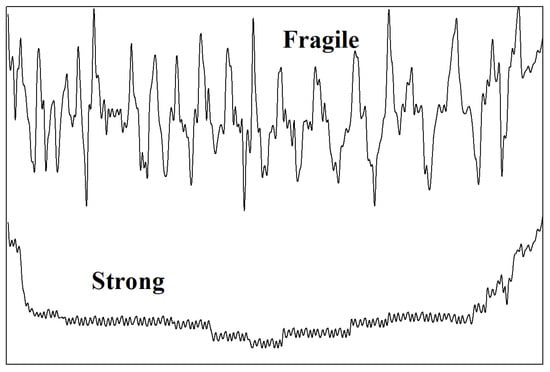 The corresponding complex landscape topography separates uniquely into individual “basins”, each containing a local potential energy minimum or “inherent structure” []. On this basis, it has been demonstrated that just the energy landscape diversity is central for the study of the supercooled liquid properties on approaching the dynamic arrest []. It has been suggested that the potential-energy surface associated with Arrhenius (‘strong’) temperature dependence should be relatively smooth, whereas the energy surface giving rise to fragile behavior should be quite rough. An important finding of this study is also that the thermodynamics would appear to be decupled from kinetic behavior. Figure 1 elucidates the notion of the energy landscape in the description of supercooled liquids and amorphous materials [].