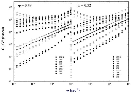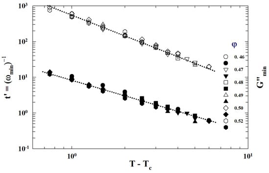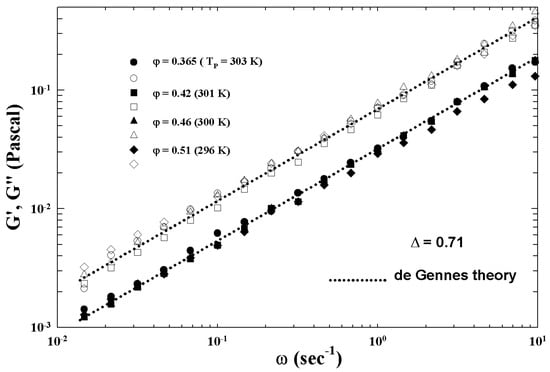- Mason, T.G.; Weitz, D.A. Linear Viscoelasticity of Colloidal Hard Sphere Suspensions near the Glass Transition. Phys. Rev. Lett. 1995, 75, 2770–2773. [Google Scholar] [CrossRef]