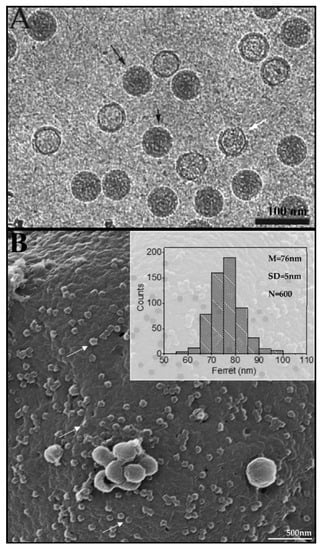 - Barreto-Vieira, D.F.; da Silva, M.A.N.; de Almeida, A.L.T.; Rasinhas, A.d.C.; Monteiro, M.E.; Miranda, M.D.; Motta, F.C.; Siqueira, M.M.; Girard-Dias, W.; Archanjo, B.S.; et al. SARS-CoV-2: Ultrastructural Characterization of Morphogenesis in an In Vitro System. Viruses 2022, 14, 201. [Google Scholar] [CrossRef]
