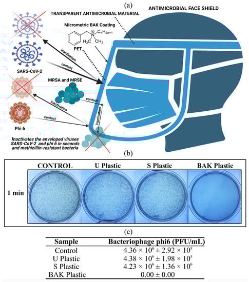 - Tuñón-Molina, A.; Martí, M.; Muramoto, Y.; Noda, T.; Takayama, K.; Serrano-Aroca, Á. Antimicrobial Face Shield: Next Generation of Facial Protective Equipment against SARS-CoV-2 and Multidrug-Resistant Bacteria. Int. J. Mol. Sci. 2021, 22, 9518. [Google Scholar] [CrossRef]