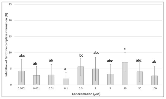 inhibition of ferrous-ferrozine complex formation (%) = [(Acontrol − Asample)/Acontrol] × 100