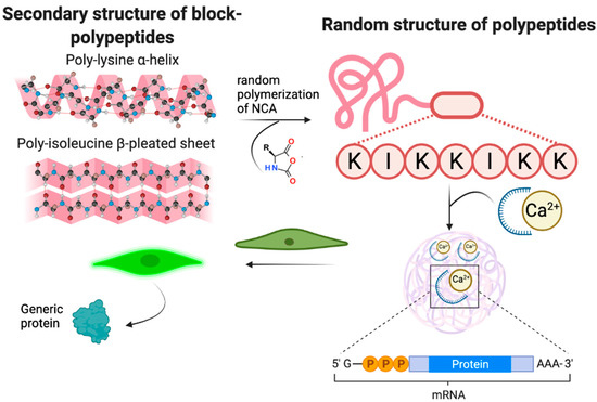 Synthesized P(Lys-co-Ile) polypeptides were also able to efficiently bind not only mRNA, but also DNA (Figure S4, Supplementary Materials).