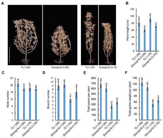 2.4. GmCOP1a and GmCOP1b Regulate Plant Height in Soybean