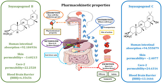 The comparative ADMET properties between soyasapogenol B and soyasapogenol C.