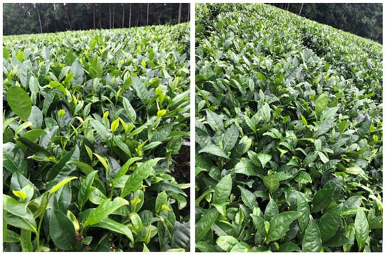 The quantity and quality of tea leaves are mainly affected by the metabolites in tea leaves, such as tea polyphenols, theanine, caffeine, vitamins, volatile oils, polysaccharides, and minerals, which are closely related to the growth process of tea trees [1]. Tea plant pests and diseases and environmental pressure cause major economic losses for tea. Traditional pesticides can increase the yield of tea, but their residues would be harmful to the local ecosystem and the quality of the tea plant [2,3,4,5,6]. The application of natural-origin chitosan has been reported safe for the environment and beneficial to the quality and yield of crops [7,8,9,10].