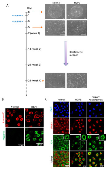 2.1. Differentiating Normal and HGPS-Derived iPSCs into Keratinocytes