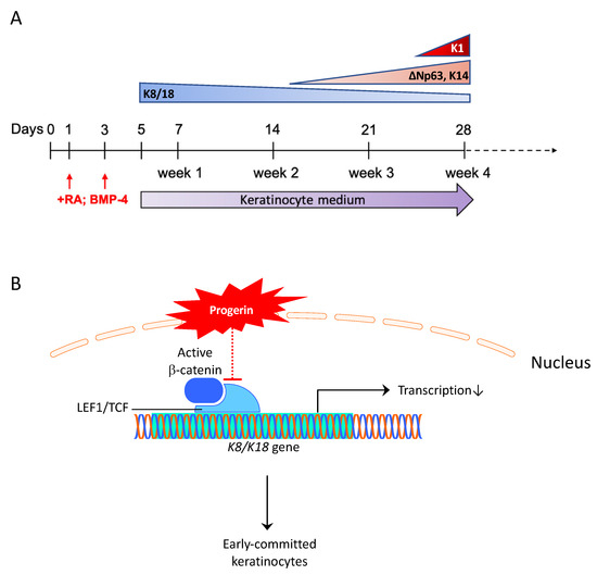 Mao, X.; Xiong, Z.-M.; Xue, H.; Brown, M.A.; Gete, Y.G.; Yu, R.; Sun, L.; Cao, K. Impaired LEF1 Activation Accelerates iPSC-Derived Keratinocytes Differentiation in Hutchinson-Gilford Progeria Syndrome. Int. J. Mol. Sci. 2022, 23, 5499. https://doi.org/10.3390/ijms23105499