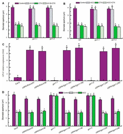2.3. GCR1 Mediates UV-B- and Ethylene-Induced Stomatal Closure by Activating GPA1-Dependent ROS Production in Guard Cells