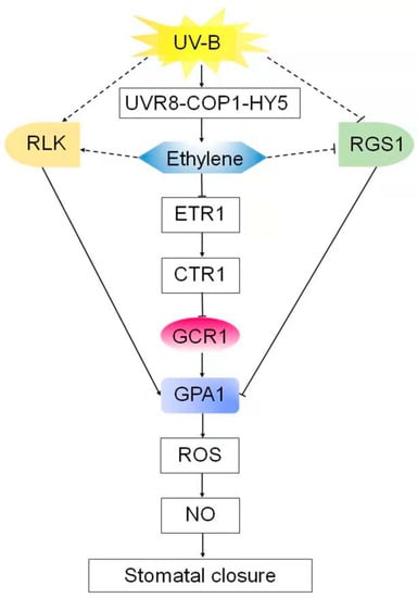 Li X, Fu Q, Zhao F-X, Wu Y-Q, Zhang T-Y, Li Z-Q, He J-M. GCR1 Positively Regulates UV-B- and Ethylene-Induced Stomatal Closure via Activating GPA1-Dependent ROS and NO Production. International Journal of Molecular Sciences. 2022; 23(10):5512. https://doi.org/10.3390/ijms23105512