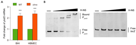2.5. H-NS Represses ybdO Gene Expression by Directly Binding to the ybdO Promoter
