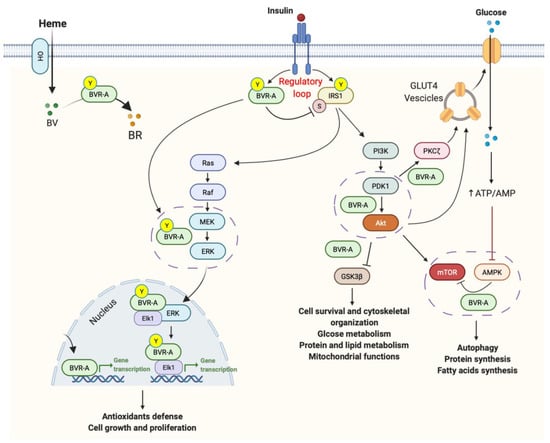 Cimini FA, Perluigi M, Barchetta I, Cavallo MG, Barone E. Role of Biliverdin Reductase A in the Regulation of Insulin Signaling in Metabolic and Neurodegenerative Diseases: An Update. International Journal of Molecular Sciences. 2022; 23(10):5574. https://doi.org/10.3390/ijms23105574