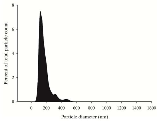 The size distribution of nano-sized particles in the 5 μm-filtered conditioned media of fibroblast-like synoviocytes (n = 5) determined by nanoparticle tracking analysis.